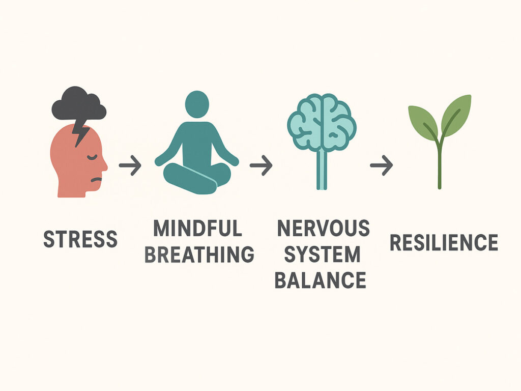 By practicing structured mindful breathing, we intentionally engage the vagus nerve, triggering the PNS and rebalancing stress hormones.