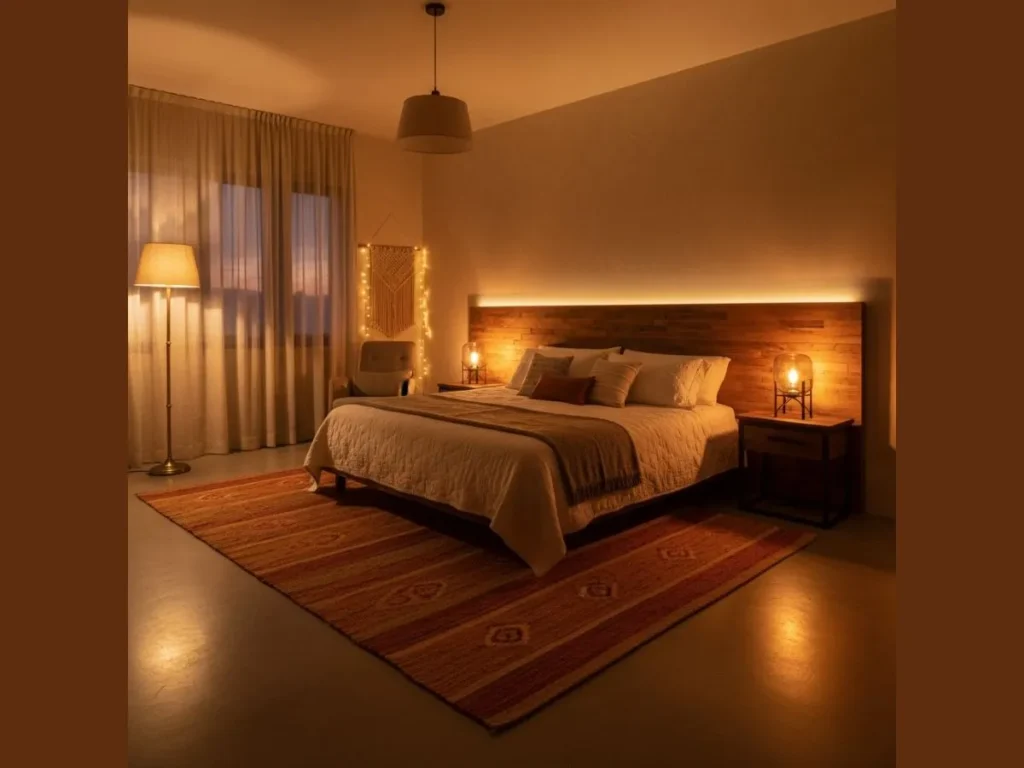 - Evening: Dim lights, red/orange tones, no screens 1 hour before bed