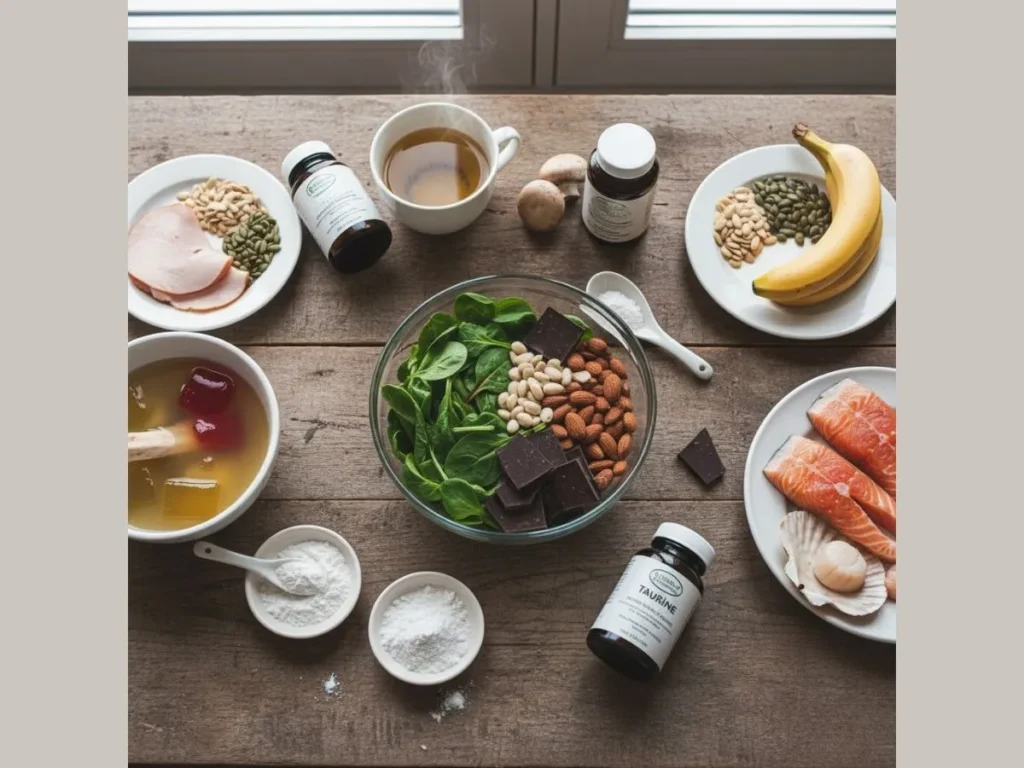| Taurine | Supports GABA receptors | Seafood, turkey |