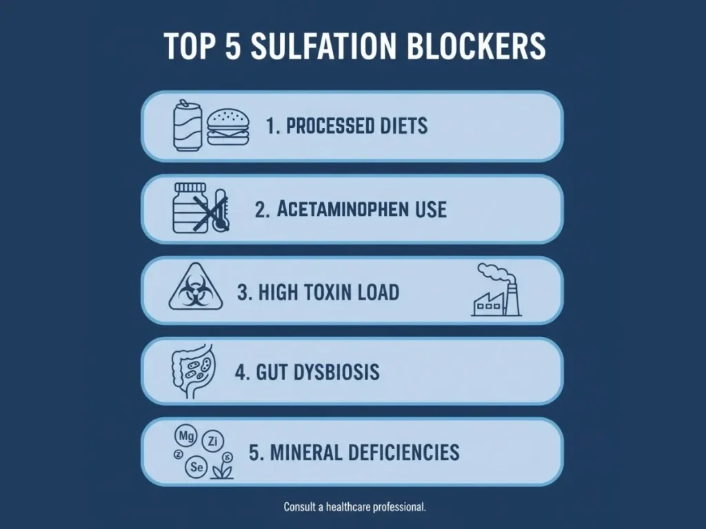 - Mineral Deficiencies: Lack of magnesium and molybdenum can block sulfation enzymes.