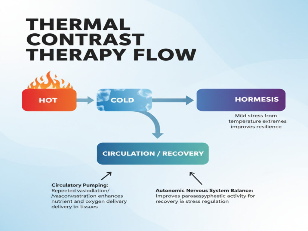 Thermal contrast works by alternating hot and cold stimuli to trigger adaptive physiological responses. Key mechanisms include: